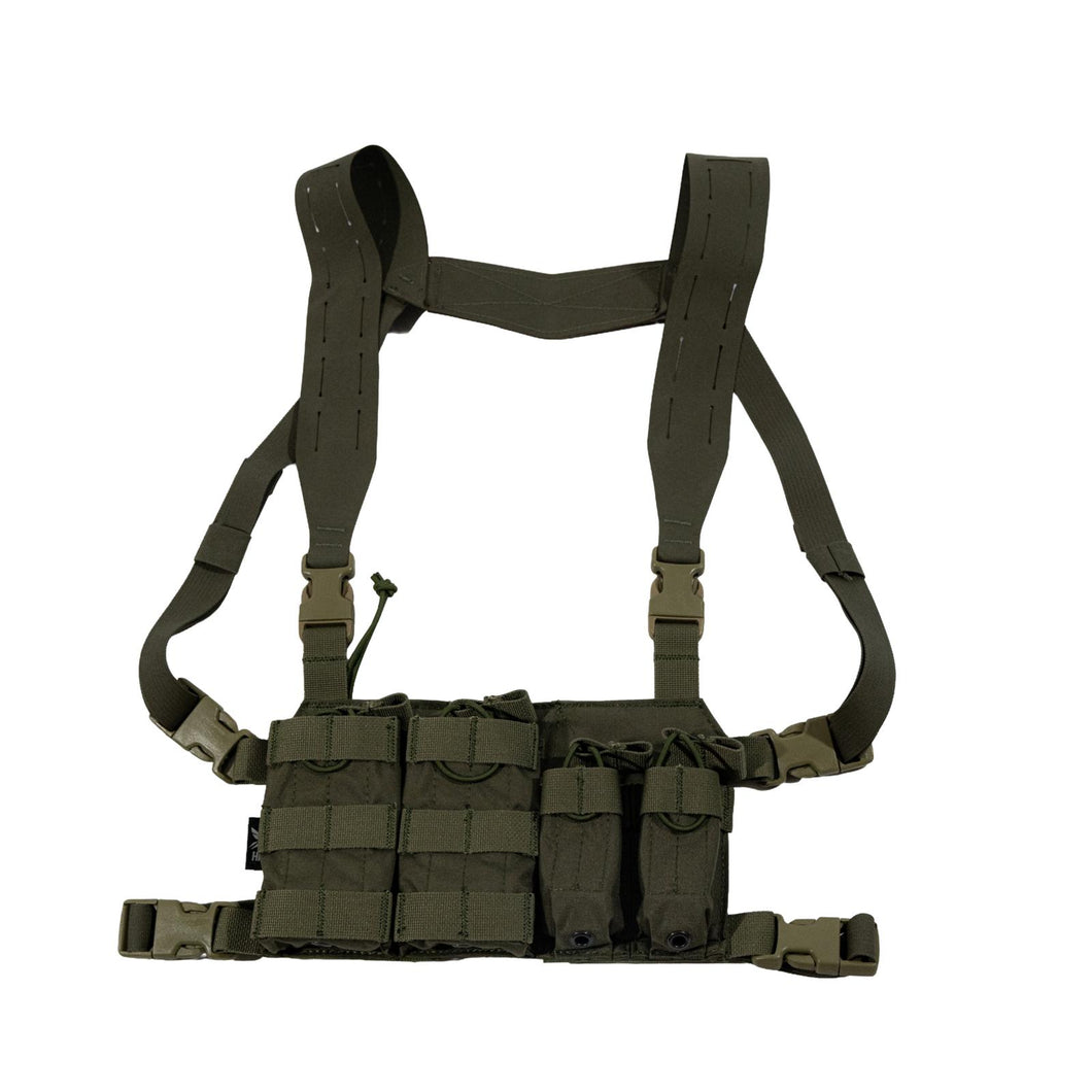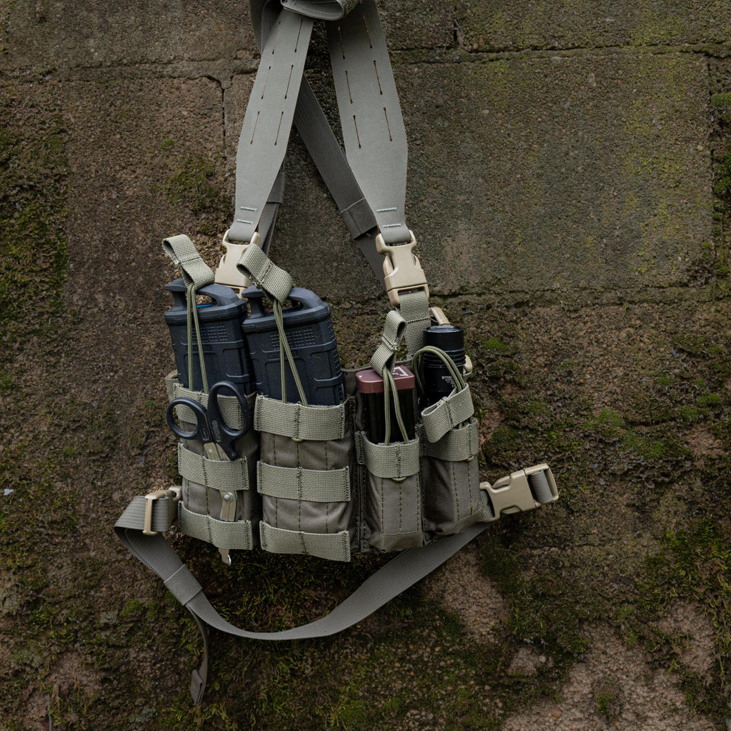 The HRT Response Chest Rig Bundle pairs the H Harness Kit, Response Placard, and Air Pass Backer into a streamlined, ready-for-anything setup. Constructed from durable 500D Cordura with integrated Duraflex hardware, this system delivers strength without unnecessary bulk. The Response Placard holds two M4-style rifle magazines and two handgun magazines, featuring polymer inserts and bungee retention for secure, reliable retention under movement.